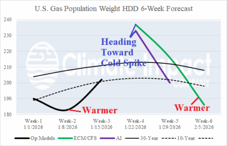Next week is trending warmer except GFS ENS which maintains a colder pattern. Forecast models are disagreeable for January 9-15 although majority of solutions are trending colder. The week-4 forecast is prohibitively cold according to CFS/ECM and AI. CFS/ECM trend toward a thaw by early February.
