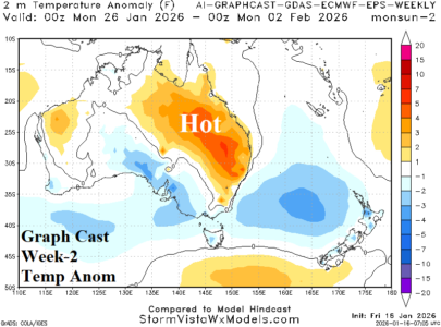 In Australia, the 6-10-day forecast indicates high impact weather including another surge of ferocious heat into Southeast Australia where 100F can reach the coast and a northwest coast tropical cyclone. shifting heavy rains well inland.