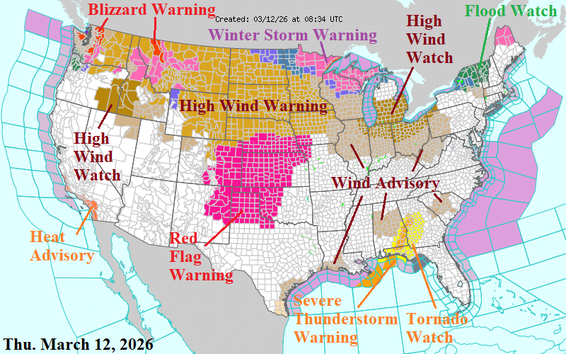 A major high wind event extends from the Northern Rockies to the Midwest U.S. today and tonight featuring wind gusts above hurricane force in the northwest Great Plains today, near 70 mph Midwest tonight, and gusting 55-65 mph in the Ohio Valley midday tomorrow. A second storm brings wind gusts to 45-60 mph Sunday night across the Midwest and Ohio Valley shifting across the Northeast Corridor with severe storms on Monday.