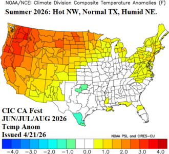 The Climate Impact Company Summer 2026 climate forecast indicates evolution of a major drought in Europe which extends to Southwest Russia. Accelerating the drought is increasing strength of anomalous heat. The forecast is based on developing strong El Nino, a prominent North Atlantic warm hole (NAWH), and emerging heatwaves in the Norwegian Sea and Mediterranean Sea.