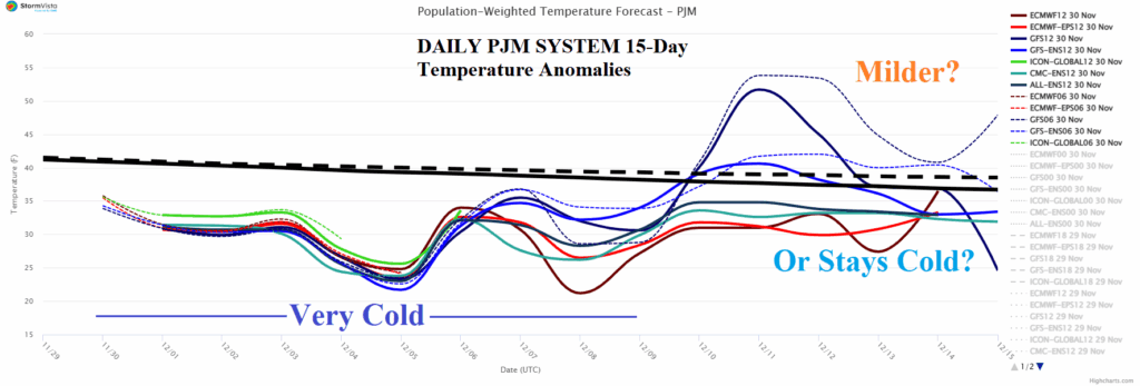 The building Midwest and Interior Northeast/Mid-Atlantic snow cover this week helps to enhance the cold pattern in place for PJM the next 10 days which may moderate in the 11-15-day period or possibly turn warmer than normal.