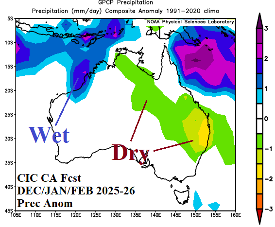 The latest Climate Impact Company constructed analog climate forecast for meteorological summer 2025-26 has changed. The outlook is drier across East Australia and hotter across Southeast/South-central Australia. The anomalous heat and dryness in this region indicate expanding drought is likely.