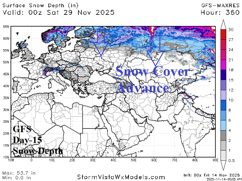 At midday, the 12Z GFS forecasts a whopping -4 value for the East Pacific oscillation (EPO) during the 11-15-day period. Other models are averaging -2 at that timeframe, about half the strength (although still impressive). The strong (-4) index supports arctic air involvement and on day-15, 12Z GFS indicates zero for morning low temperatures from Colorado to South Dakota. Is the forecast overstated?