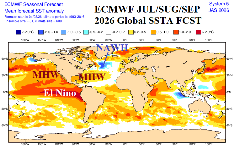 Fig. 6: The ECMWF global SSTA forecast for JUL/AUG/SEP 2026.