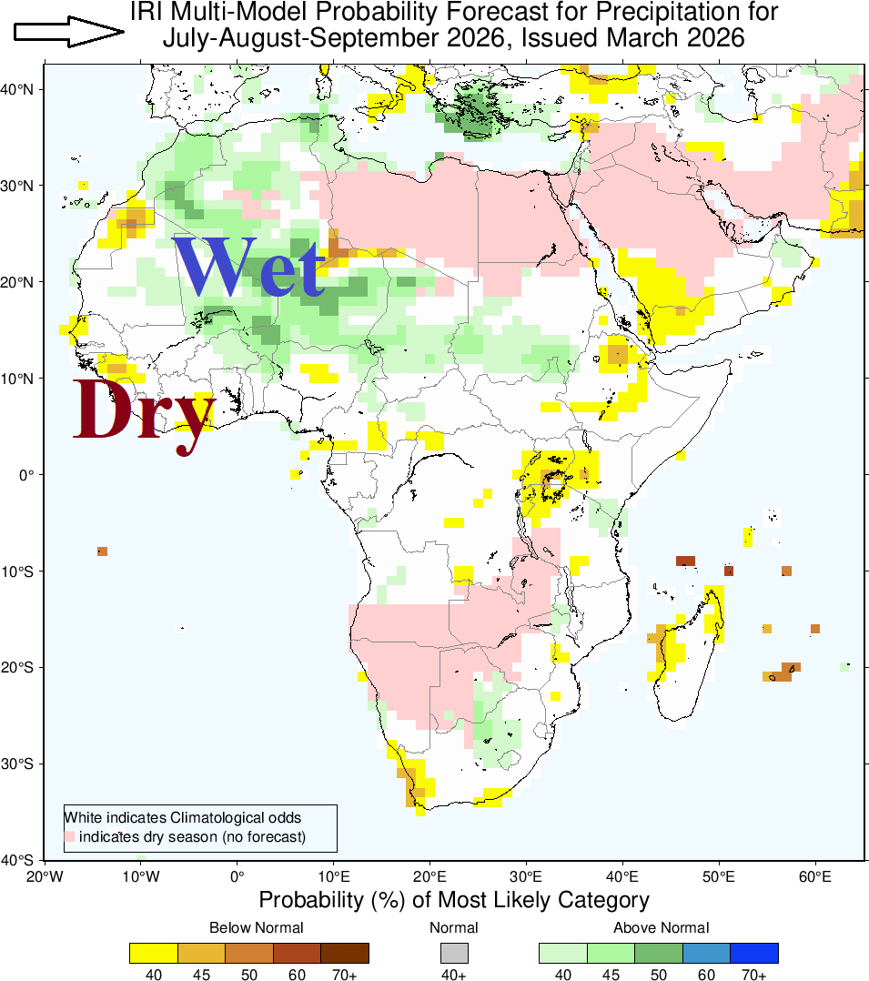 Fig. 7: The IRI/LDEO precipitation probability forecast for Africa valid JUL/AUG/SEP 2026.