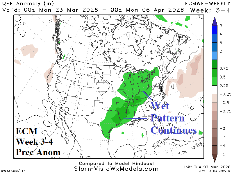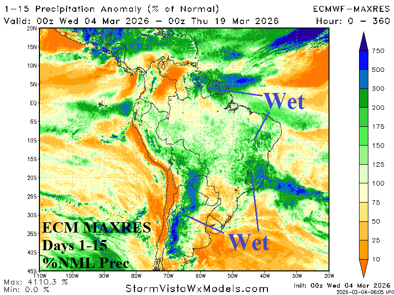 Highlight: Wet Mid-south/Midwest U.S. pattern ahead; Wetter South America.