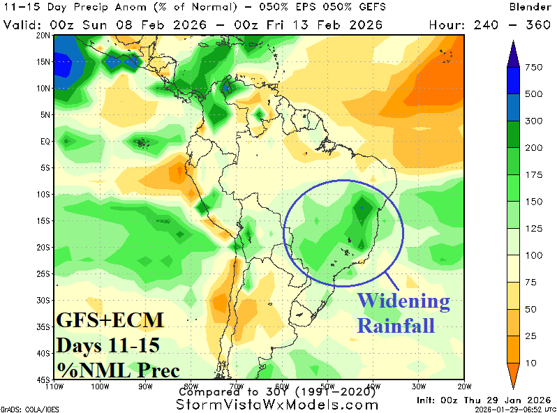 Highlight: Persistent North-central to Northeast U.S. extreme cold risk, North/East Europe chill and potent South Europe storm track continue, and heavy rains for Brazil.