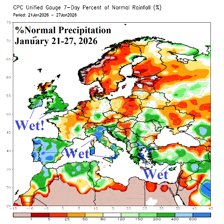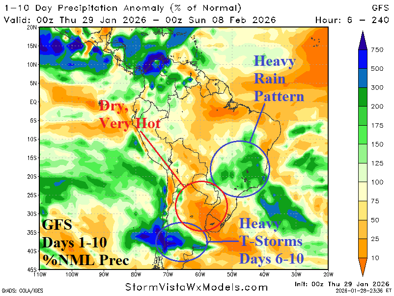 Highlight: Persistent North-central to Northeast U.S. extreme cold risk, North/East Europe chill and potent South Europe storm track continue, and heavy rains for Brazil.