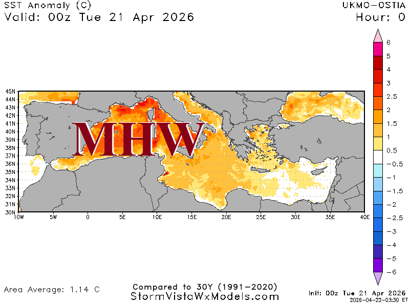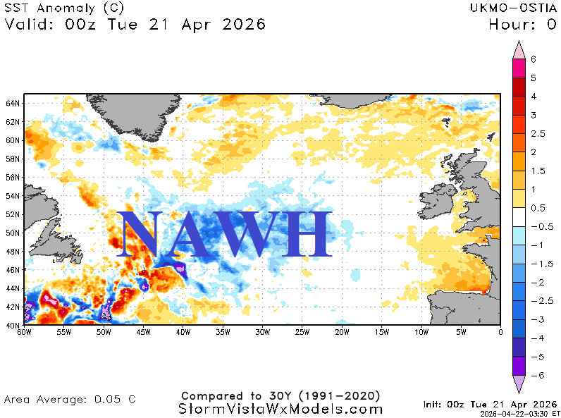 Discussion: Majority of the past 10 years of warm seasons have produced a cool pool of sea surface temperature anomalies (SSTA) south of Greenland while the Mediterranean Sea SSTA were exceptionally warm. The semi-permanent cool pool south of Greenland commonly referred to as the North Atlantic Warm Hole (NAWH) is part of the slowdown of the Atlantic Meridional Ocean Conveyor Belt (AMOC) which has slowed the transport of warm water in the deep tropics poleward. The anomalous warmth in the Mediterranean Sea is characteristic of the increasing tendency for marine heatwaves (MHW). Interestingly, 2 recent years (2023, 2024) when the regime described failed to develop, the North Atlantic basin set SSTA records. When the NAWH and Mediterranean Sea MHW were present during 7 of the past 10 meteorological summer seasons, the influence of the oceanic regime on the prevailing weather pattern across Europe is an amplified high-pressure ridge centered on France and Germany. The upper ridge caused a summer weather pattern featuring widespread anomalous heat and dryness affecting Europe and West/Southwest Russia to the Black Sea region. Above average risk of the described pattern developing during summer 2026 and affecting Europe/Western Russia is warranted.