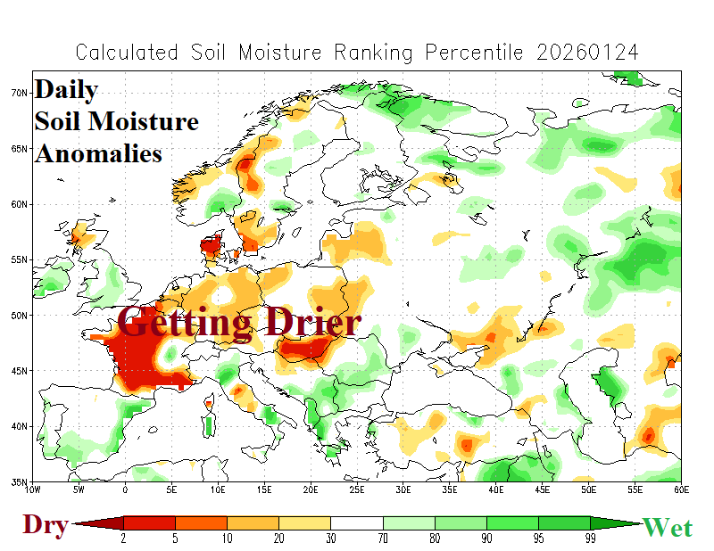 In Europe, a recent trend toward drier soil conditions has developed from France to Poland (Fig. 9). There is potential for several tropical cyclones in Australia to New Zealand waters through the next 15 days (Fig. 10). Extremely hot weather remains forecast for Southeast/East Australia this week edging northward in the 6-10-day period.