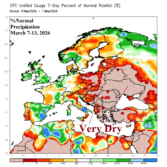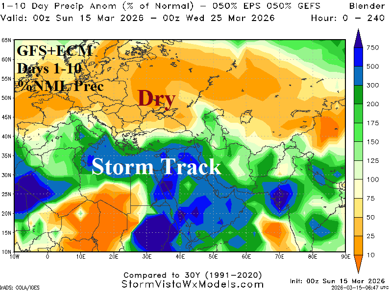 Europe Dry-to-Drought Risk Expansion; Middle East Shifts Stormy