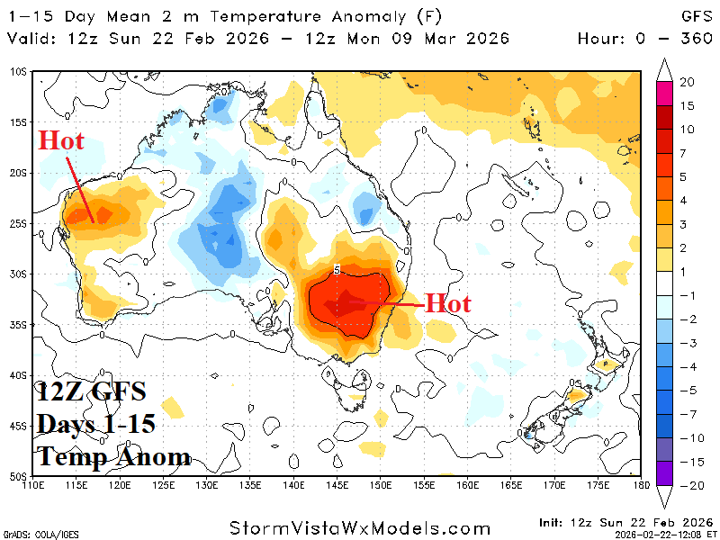 In Australia, the wet 10-day forecast for central/south-central continent remains although a new twist develops as northern New South Wales shifts hot and dry much of the next 2 weeks (Fig. 9-10).