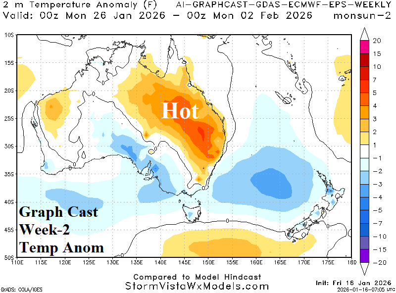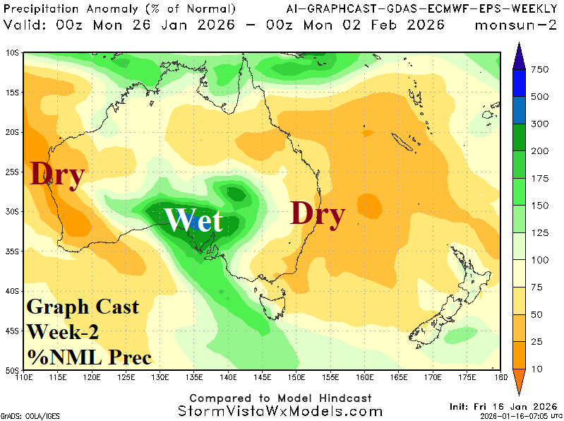 Week-2 Ahead Forecast valid January 25-February 1, 2026: East Australia shifts hotter/drier.