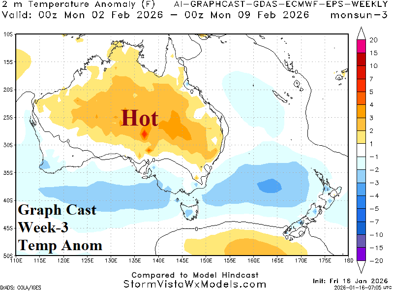 Discussion: East Australia is the target of anomalous heat and dryness to finish January. Some heavy rain is possible on the south-central coast.