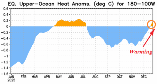 Globally, 2025 projects as the third warmest on record (DEC-25 data not yet available as of this writing). As of December 1st, the U.S. has observed the fifth warmest year in the 131-year period of record. A significant contributor to the warmer climate is the influence of increasing ocean temperature, most notable in the middle latitudes accelerated by the presence of marine heatwaves (MHW).