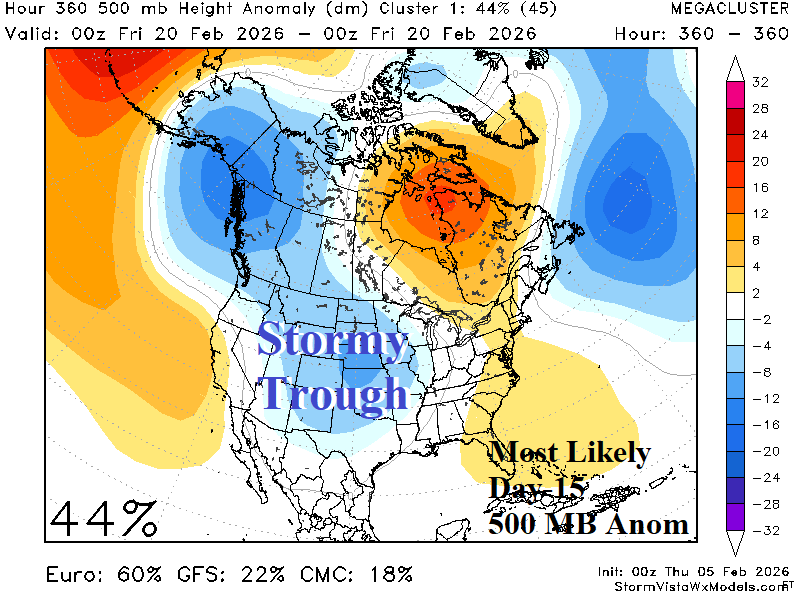 Fig. 5-6: The mega-cluster most likely and caveat 500 MB anomaly forecast for day 15.