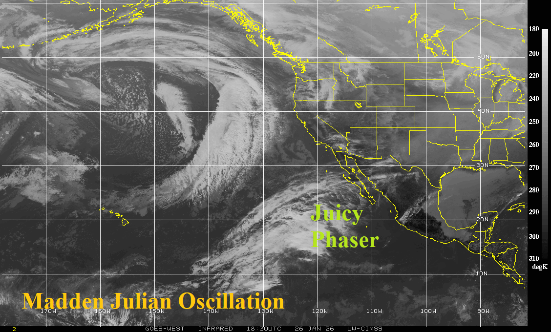 Fig. 1: The East Pacific satellite view which identifies presence of the convection phase of the Madden Julian oscillation.
