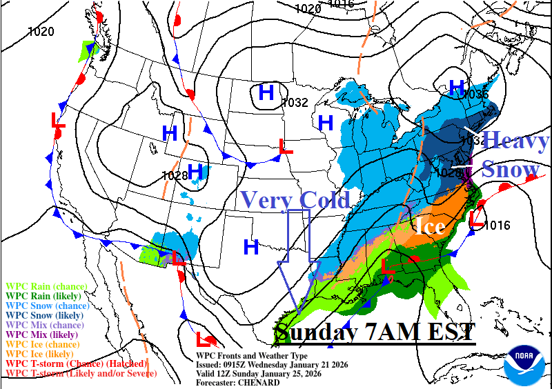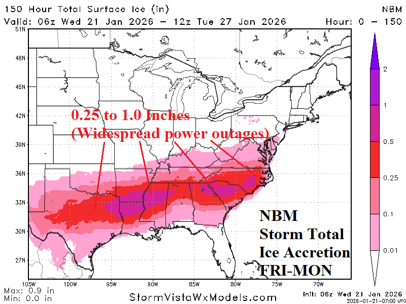 Highlight: Forecast confidence and hazards increasing. Texas cold is stronger, major Interior South U.S. ice storm, heavy snows Virginia/Northeast Coast.