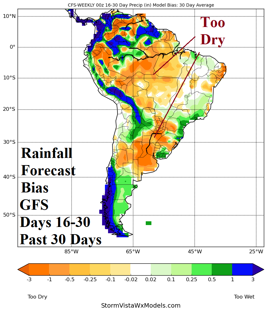 Discussion: During the past 30 days, ECM has produced a wet bias with their rainfall forecasts in the 16-30-day timeframe. Conversely, the GFS is too dry.
