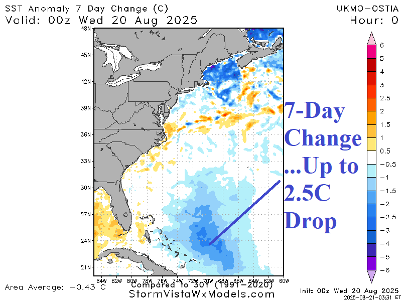 Fig. 5-6: Western North Atlantic basin sea surface temperature anomalies and 7-day change.
