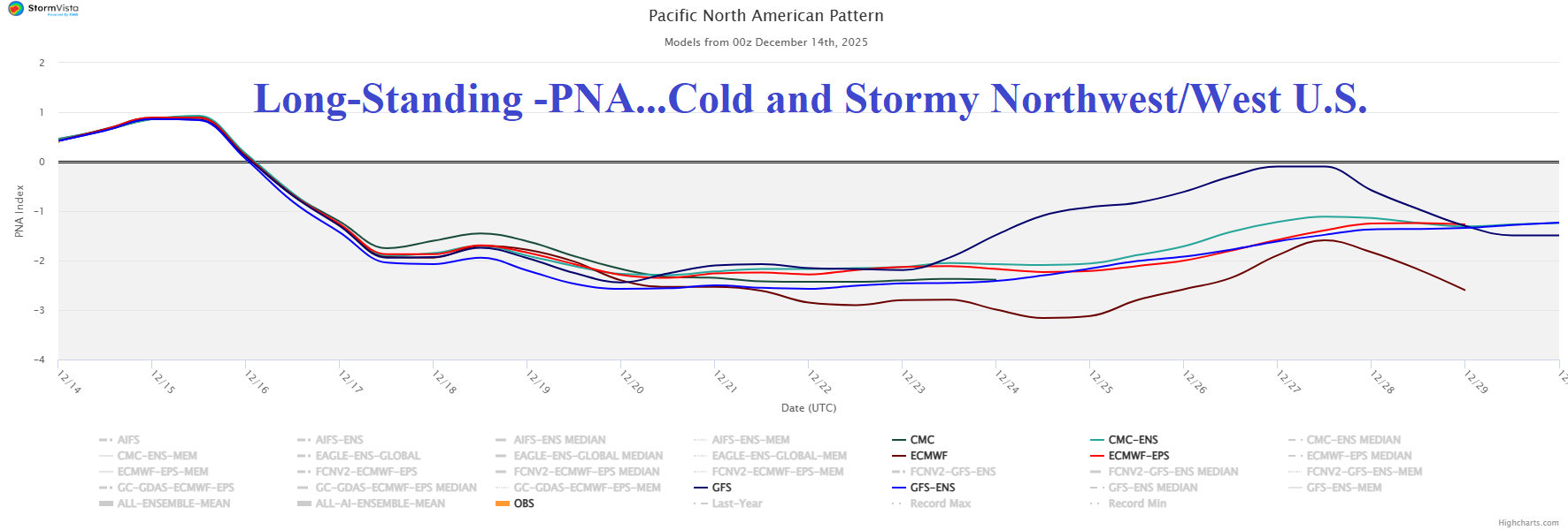 Fig. 6-7: Negative Pacific North America index supports stormy and colder West U.S. weather while the Northeast U.S. could shift colder again in the extended range as negative North Atlantic oscillation generates.