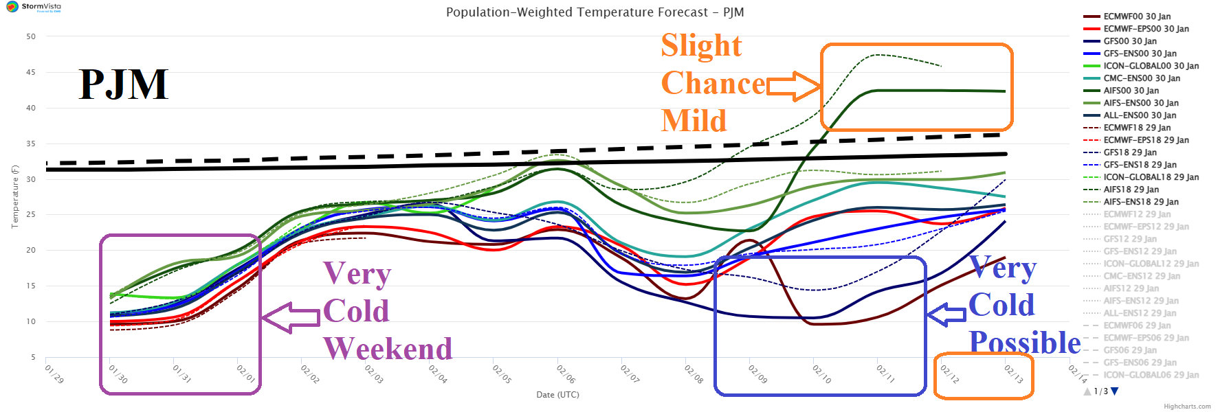 Fig. 7: PJM 15-day population weight daily average temperature forecasts utilizing all models.