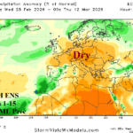 ENSO/MJO: Waters off the northwest coast of South America warmed vigorously during February although slightly cooler this week. Other Nino SSTA are in neutral range. The equatorial East Pacific subsurface is extremely warm. The MJO 15-day forecast indicates eastward progression with moderate strength through phase_5/phase_6 (equatorial West Pacific to the Dateline) supportive of U.S. warmth and potential significant Central/East-central U.S. storms.