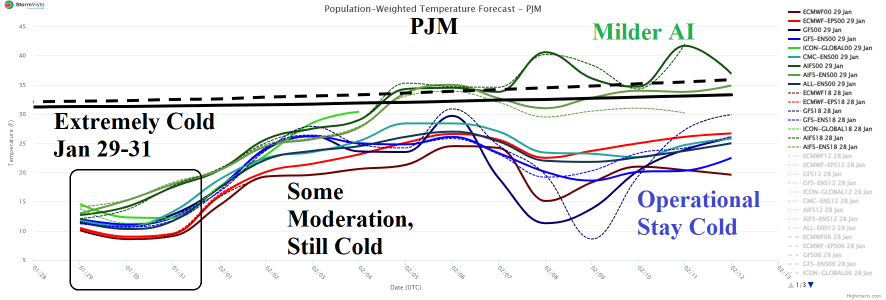 The PJM forecast identifies the extreme cold through the weekend with some moderation to follow but staying colder than normal throughout the 15-day outlook although some AI models, moderate temperatures to near normal (Fig. 7).