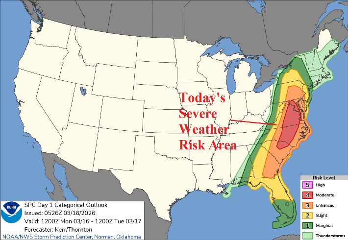 Major Severe Weather Outbreak East-Central U.S. Today; Atlantic States Tomorrow