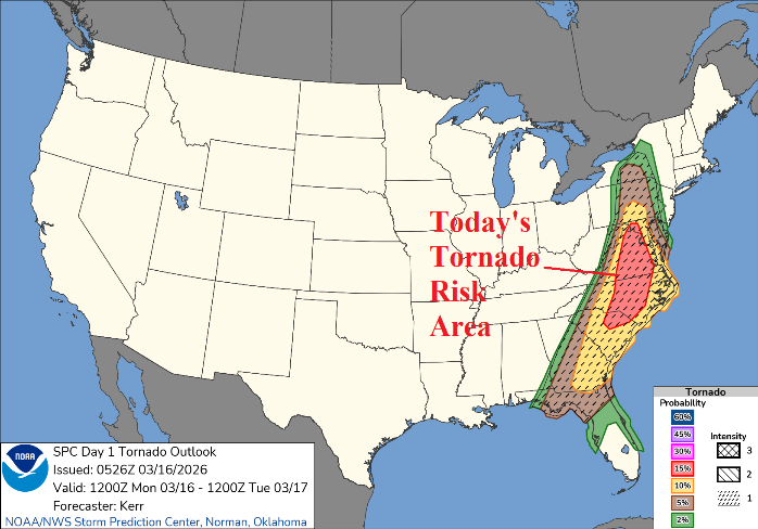 Fig. 2-3: NOAA/SPC severe weather regions for today.