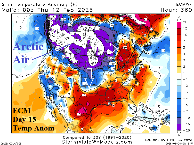 Historic -AO, Strengthening -NAO, Cold Pattern Expands in February for U.S.