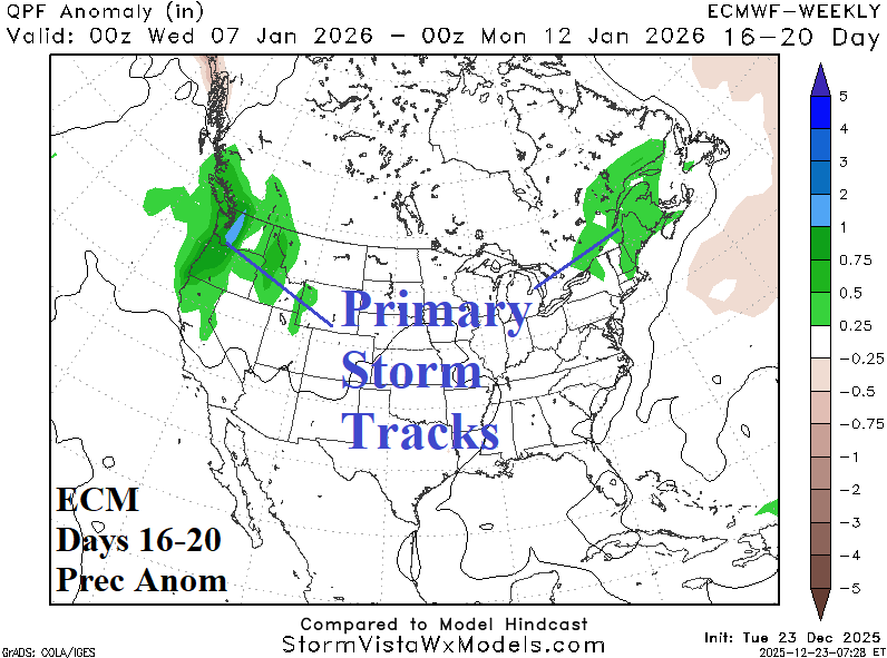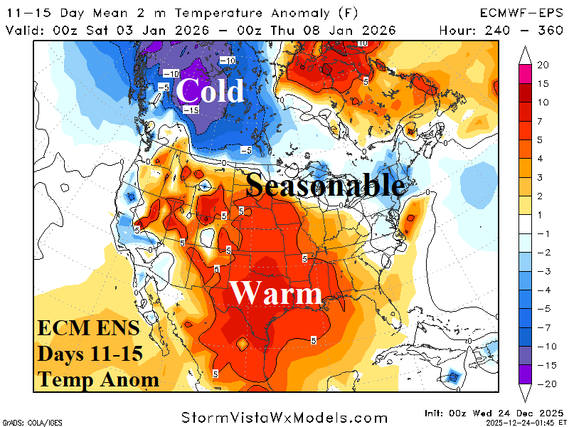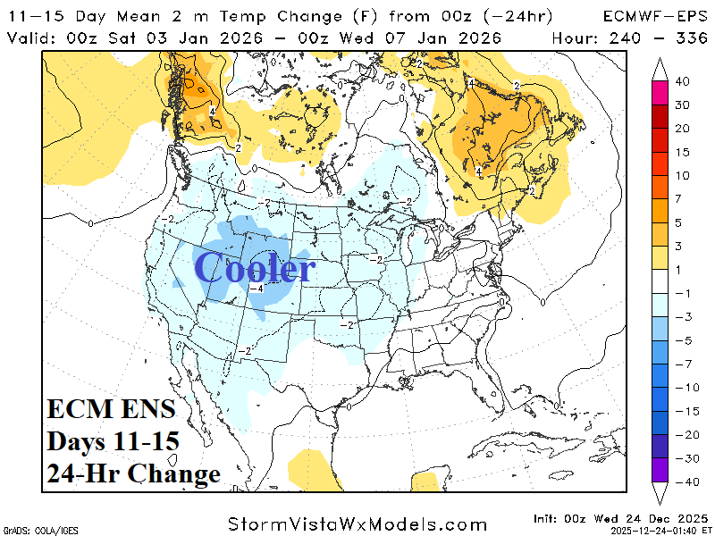 Medium-range 11-15 Day Forecast Valid January 3-7, 2026 (ECM ENS left and 24-hour change right)