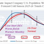 Discussion: The most likely scenario (45% risk) is indicated by the ECM maintaining Northern U.S. cold risk while the remainder of the U.S. is warm. There is some risk that each coastal location could be colder.