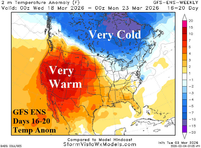 Days 16-20 Extended range Temperature Forecast valid March 19-23, 2026