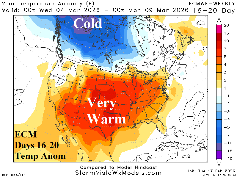 Days 16-20 Extended range Temperature Forecast valid March 5-9, 2026