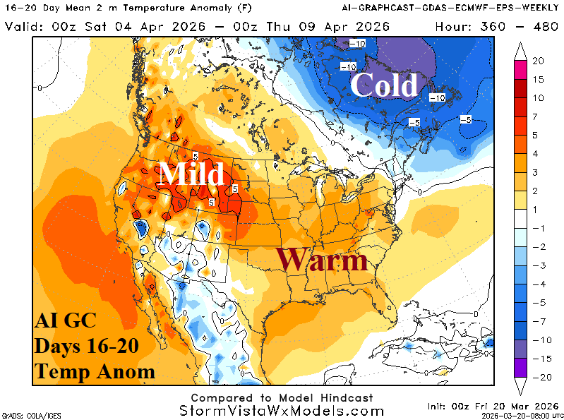 Days 16-20 Extended range Temperature Forecast valid April 5-9, 2026