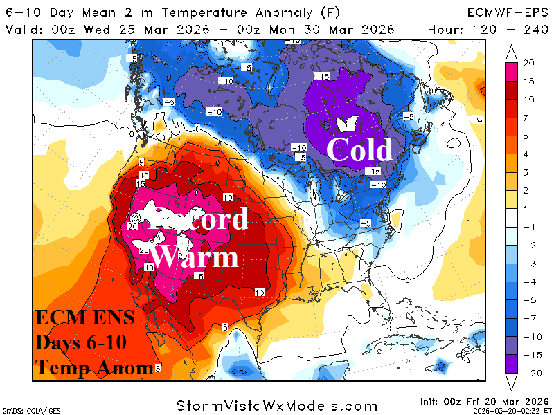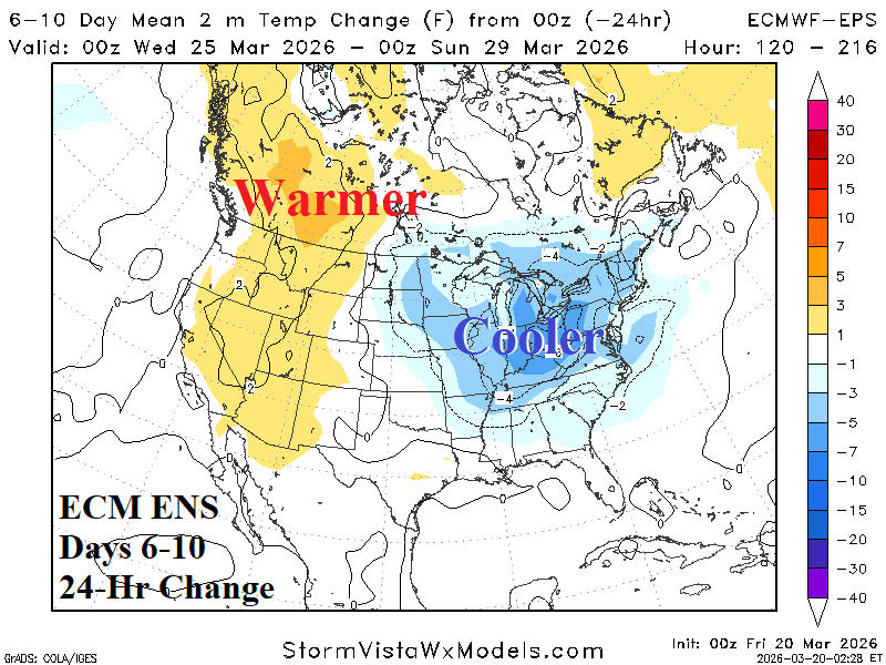 Medium-range 6-10 Day Forecast Valid March 25-30, 2026 (ECM ENS and 24-hour change)