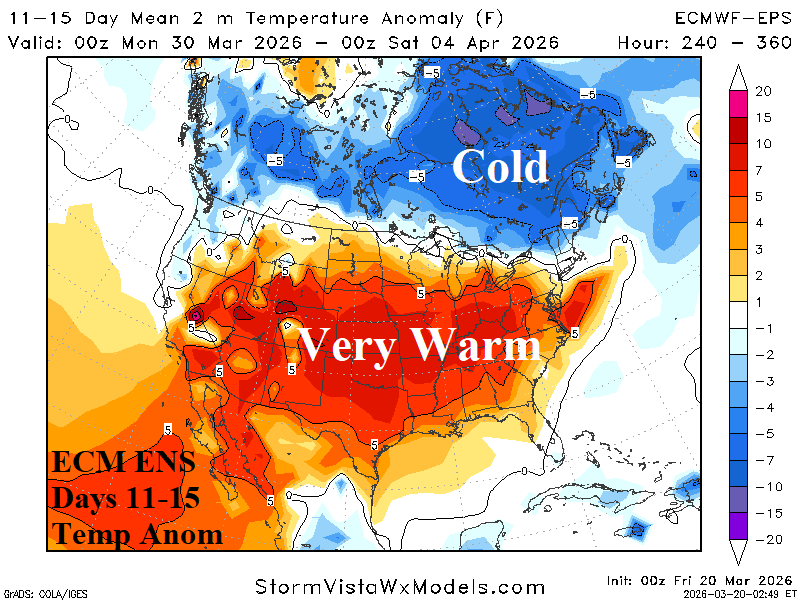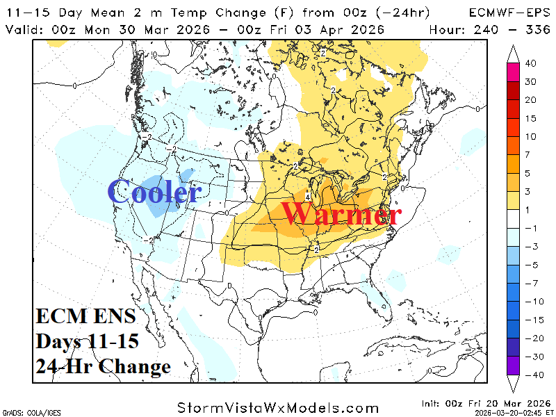 Medium-range 11-15 Day Forecast Valid March 31-April 4, 2026 (ECM ENS and 24-hour change)