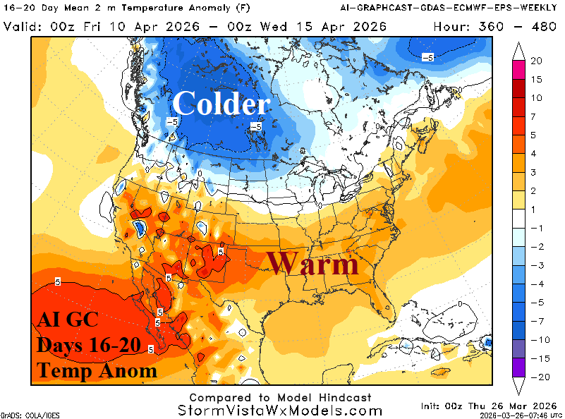 Days 16-20 Extended range Temperature Forecast valid April 10-14, 2026