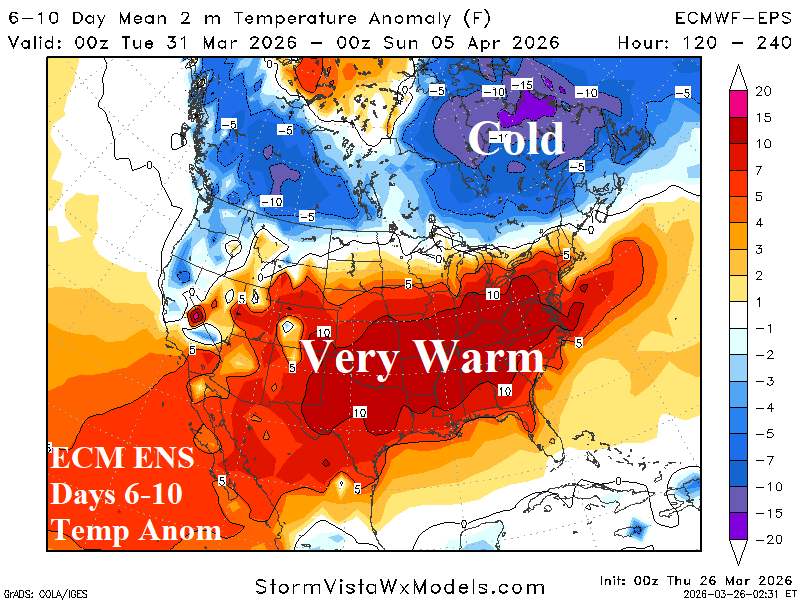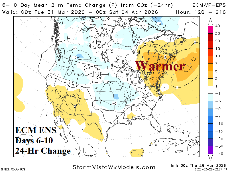 Medium-range 6-10 Day Forecast Valid March 31-April 4, 2026 (ECM ENS and 24-hour change)