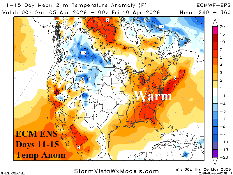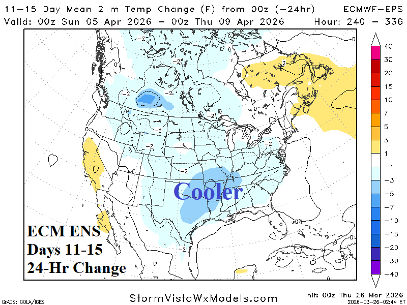 Medium-range 11-15 Day Forecast Valid April 5-9, 2026 (ECM ENS and 24-hour change)