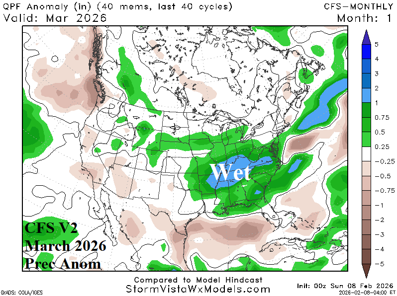 Fig. 5-6: The ECM and CFS V2 precipitation outlook for the U.S. during March 2026.