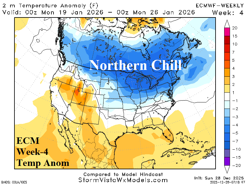Fig. 1: ECM week-4 North America temperature anomaly forecast.