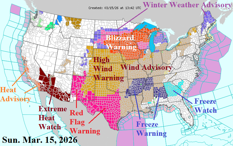 Fig. 1: NOAA/NWS weather watch, warning, and advisory areas.