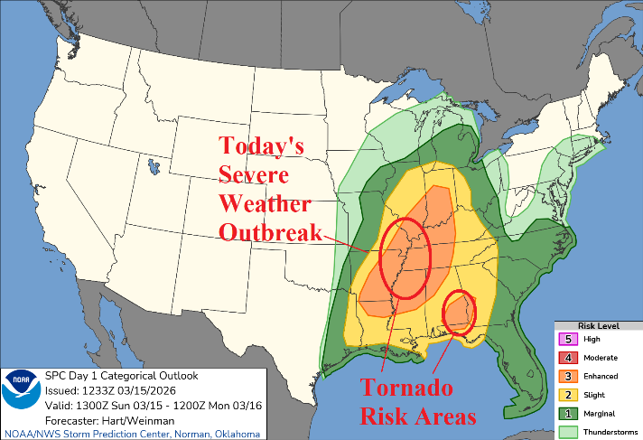 Fig. 2-3: NOAA/SPC severe weather outlook for today and tomorrow.