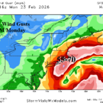 Fig. 3: The GFS max wind gusts in the Mid-Atlantic Coast region tonight.