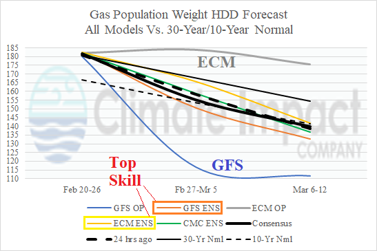 Fig. 5: The U.S. gas population weight HDD forecast utilizing all models through the first third of March.