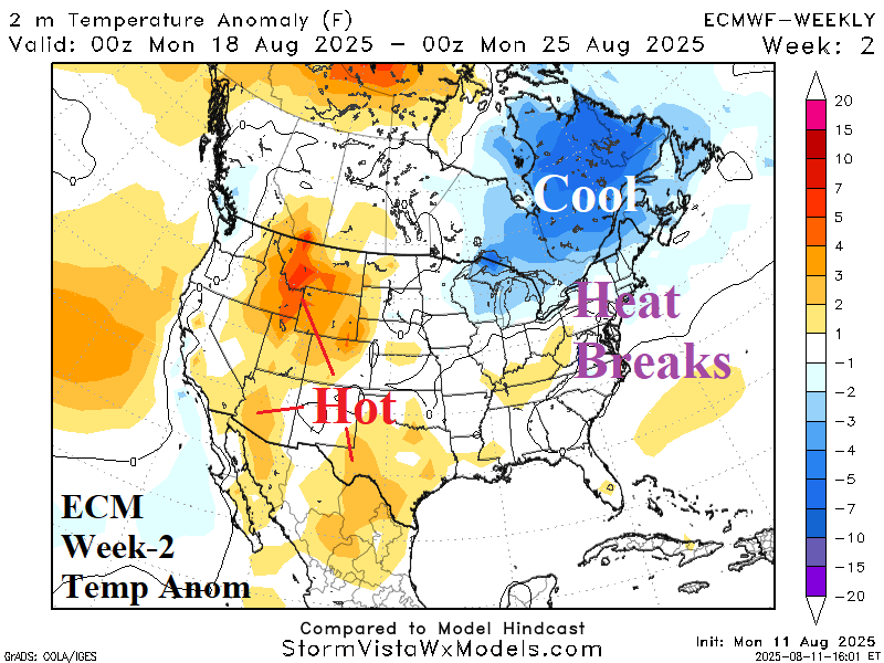 Highlight: Heat breaks but warm pattern returns in September.