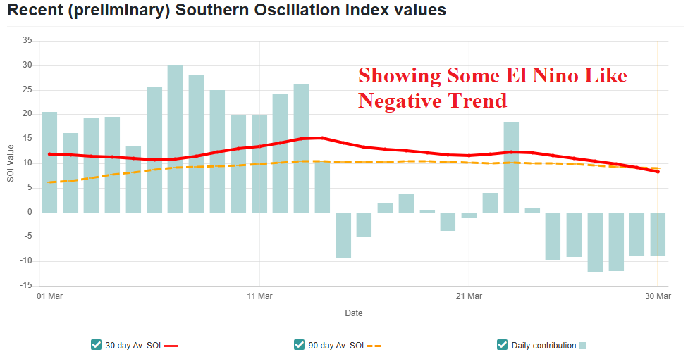 Fig. 4: Finally, negative southern oscillation index has recently generated indicting the La Nina climate is fading.