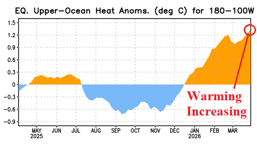 Subsurface Equatorial Pacific Continues to Warm Impressively